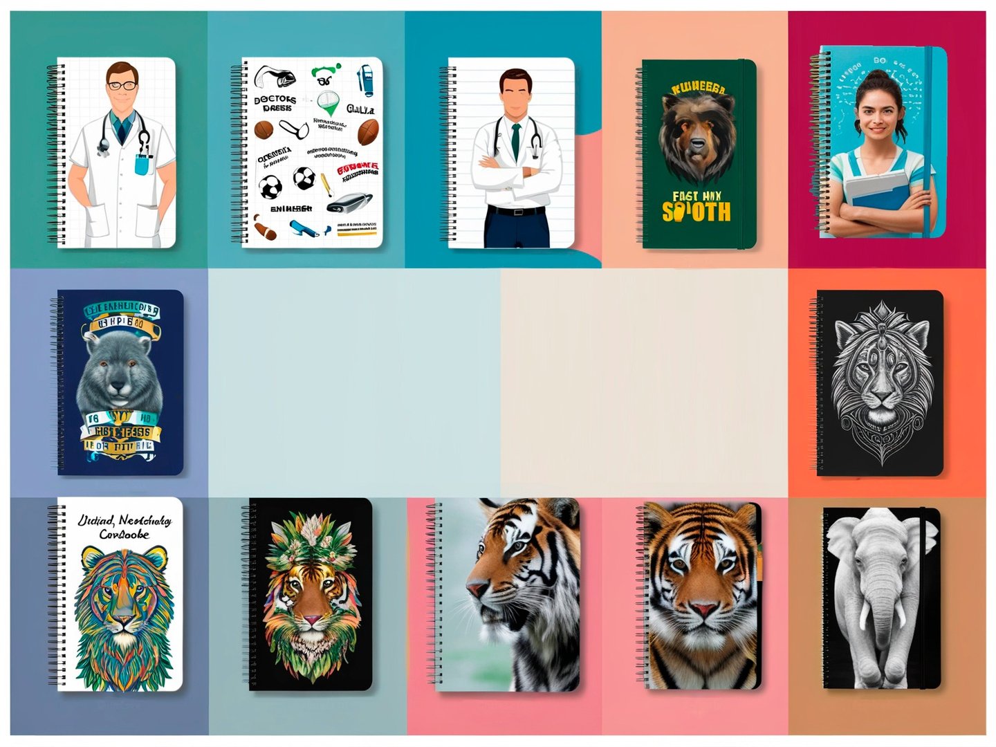 Cadernos que celebram diferentes carreiras e vocações.